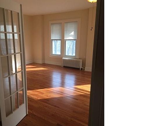 Huge 2nd floor apartment. 3 bedrooms all with closets 2 full bathrooms 19ft ceilings huge updated kitchen Hardwood floors throughout Newly painted mudroom off of back entrance with closet porch driveway and garage 1 designated spot in the garage and 1 spot outside of the garage washer and dryer in unit Oil heat gas stove The 1st floor apartment is not occupied and will not be completed until end of summer. House to be painted outside over summer Owner will CONSIDER 1 small pet call or text list agen with questions.