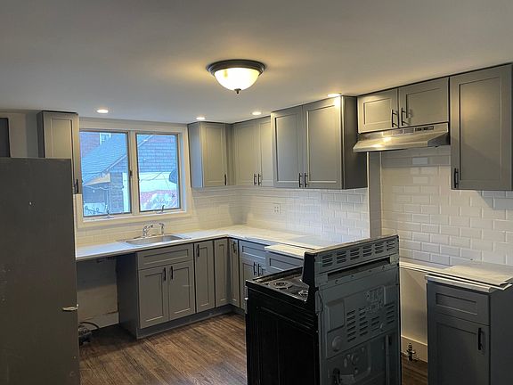 Freshly renovated 3 bedroom apartment in a three story duplex. Apartment features 3 bedrooms, renovated Eat in Kitchen, renovated bathroom. 1st floor has kitchen, bathroom, living room and 1 bedroom. 2nd floor has two bedrooms. Full basement. Walk up attic. Private driveway and backyard. Resident responsible for electric, gas heat and hot water. Landlord responsible for water and sewer.