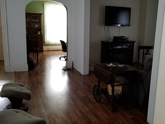 Fabulous and classic home loaded with charm.Inviting entry foyer greets you into this lovely home.All new flooring on first floor.Twelve foot ceilings give a large and open feel.Room off huge living room could be third bedroom.Convenient half bath offering first floor laundry.Some wonderful updates include all newer windows,complete tear off roof,furnace and central air.Classic woodwork.Covered patio overlooking good sized yard and shed for all your storage needs.Beautiful large formal dining room perfect for your holiday gatherings.Tons of storage with full attic.Maintenance free vinyl exterior.This is a charming home that has so much to offer on tree-lined street close to all conveniences at a great price.