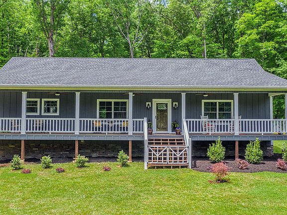 This is country front porch living at its best. This custom home was built in 2017 using the finest cabinets, granite, and flooring available. It sits on a Superior Wall System leak-proof basement. It has parking in the 2 car garage below or pull around back for another 2 car space to enter at ground level. Large walk-in closets for all 4 bedrooms. Main floor has 9 ft ceilings while the basement ceilings are 9 1/2 ft. The tall ceiling makes for a spacious feel. Walk out on the front deck and see nothing but woods, deer, and turkey. Very private. Home has already been pre-inspected by Adam Boggess of Rock Solid Home Inspections and comes with a 1 yr Home Warranty. The owner also has a recent termite letter on file.