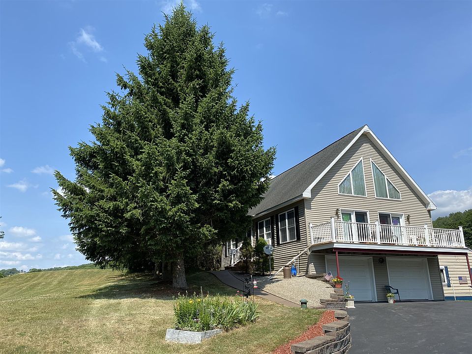 Serenity now!! It is here!!...rolling hills, miles of mountain views and the smell of fresh air! May you find peace in this adorable Chalet home, 17 years young and well taken care of. This home boasts an open floor plan concept with tons of natural light beaming through the oversized windows climbing up to the height of the vaulted ceiling in your dining and living room space. Enjoy beautiful sunrises and sunsets, moon glows and rainstorms from your maintenance free deck. Radiant heat allows for affordable energy bills. The upstairs has a loft/office area and is perfectly situated to allow the right amount of light in to enjoy while you are working from home or just relaxing.Need extra space?..utilize a bonus outbuilding with endless potential! One level living and then some! Won't last!