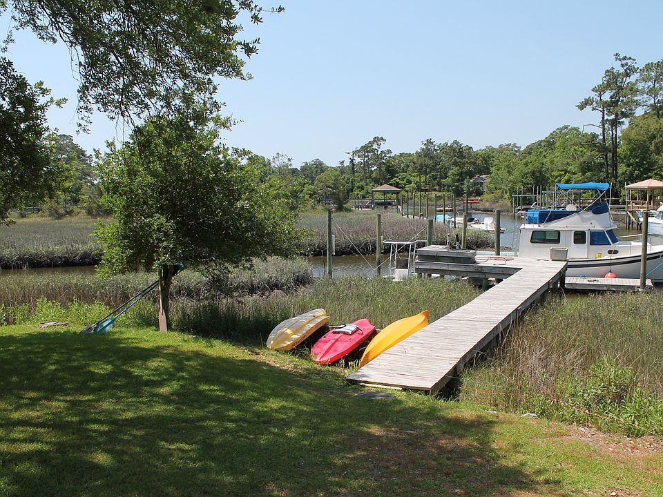 Unique custom home on deepwater with 180 degree water views and only a couple of minutes from the ICWW. The almost one acre yard features gorgeous live oaks, and a custom pool with stone patio. Two fireplaces, ash floors and a large screened porch make for easy entertaining with an enormous great room with 14' ceilings and deluxe master suite upstairs with balcony and his and her walk in closets. Nice office/nursery and two guest rooms make for plenty of space. Gated driveway and fenced yard. Available almost immediately!