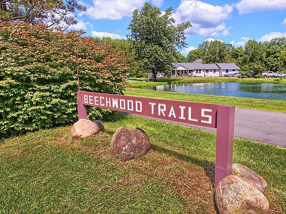 PRICE IMPROVEMENT! Move in ready, open concept ranch home on almost half an acre in Beechwood Trails! Beautiful treed lot, big picture window in living room has a great view of the pond across the street. No carpet at all in this house...hardwood floors in kitchen and main living area, laminate in bedrooms, bathrooms and basement! Gas fireplace in basement makes it warm and cozy in the winter. Both bathrooms have been recently updated. The finished part of the basement is spacious and multi-functional; the unfinished side has lots of storage and is bright and clean! Roof new in 2017, garage door new 2016. Home has been well cared for and has been kept updated through the years of ownership.