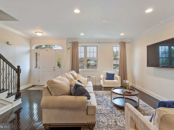 This stately twin home in the heart of Conshohocken is just 9 years young! With 9 foot ceilings on every floor, modern open floor plan, and 3700 square feet of living space. Through the front door with arched transom window and dual sidelights, into the airy and open first floor. Newly refinished dark espresso 3/4 inch hardwood floors run throughout the Living room, Dining Room and Kitchen. Bright white crown molding and 6 inch baseboard trim accent the newly painted light gray walls, with all custom rounded cornering in every room of the home. Ample room for a large sectional couch and side chairs in the living area, still elaving space for a grand dining room table to place under the custom chandelier. The updated kitchen has abundant french style white 42" cabinets, and espresso colored island with over hang seating. All topped with brand new white and grey veined Quartz counter tops. The Kholer chrome faucet, never used GE Profile gas 5 burner range, and matching stainless GE microwave, dishwasher, island wine fridge, and refrigerator give the kitchen a sleek clean look. Brand new marble back splash with opal accents, new island pendants, and deep under-mount stainless steel sink will make this kitchen perfect for any entertainer and gourmet cook. The powder room with pedestal sink, and coat closet complete the 1st floor. Up the oak tread stairs case with iron spindles and oak railings, to the 2nd floor hall, with matching espresso hardwood. The 1st bedroom rivals most master bedrooms, with brand new Berber carpet, walk in closet and en suite bath. Pass the 2nd floor laundry, with front loader Kenmore washer and dryer and upper shelving, and into the 2nd bedroom. Large windows, slider closet and yet another en suite full bath make this room an ideal guest room, office or nursery. Upstairs is the crown jewel of this impressive home. The massive Master Suite includes a 20'x19' bedroom with brand new custom pattern carpet, slate surround gas fireplace, and double sliding glass doors that open to a Juliet balcony, with expansive views of the quaint surrounding town. The wide hall is lined with sophisticated square marble tiles that run throughout the floors of the dual walk-in closets, and into the stunning master bath. 2 vanities on either end have dark espresso cabinets and drawers, custom travertine bowl sinks and counter tops, and wall mounted chrome faucets with marble back splashes. A large jetted soaking tub with marble tile surround and glass tile accents is centered under large windows for sunset views. This spa like retreat's most impressive feature is the massive frame-less glass surround shower. With floor to ceiling marble tile, pebble wet bed and ceiling accent, marble bench seat, and chrome rain head, 3 wall jets, and hand help shower head, this shower is unrivaled in many of the most discerning luxury homes. Down stairs is a 800 square foot finished basement with 9 foot ceilings, porcelain tile floors, additional storage in the utility closet and under stair closet. With included pool table, wired surround sound speaking in every room of the home, and massive square footage, this home was built for entertaining. The dual HVAC systems give the home 2 zones with high efficiency Goodman natural gas heating and central A/C systems. Outside the rear door, just off the kitchen is a newly painted pressure treated deck with vinyl railings and gas line hook up for easy summer night grilling. The cement walk way leads directly to a sizable 2 car garage with key pad entry and electronic openers. This ideal location makes the home walk-able to 2 train stations to down town Philadelphia, plus all the favorite eateries, shops and bars of Conshohocken. Just minutes from 76, 476, 276, 422 and 202, Conshohocken is a perfect centralized location for commuters and travelers alike. This home is an impressive value when compared to many of the surrounding new homes. Do not miss the Open House this Sunday Nov. 3rd from 12-2pm!