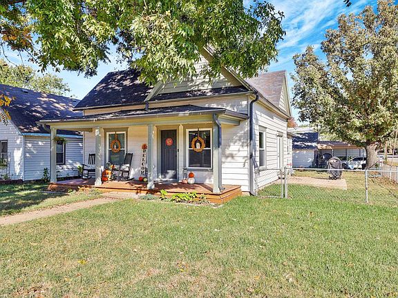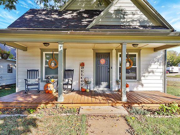 Here is your opportunity to own a Historic Mulvane Cottage! This home was built in 1880 and has been updated and meticulously cared for by the owners. So many updates through the years including newer wiring, HVAC, roof and guttering! The windows were replaced last year which will be a huge savings on utility bills and the exterior was recently repainted as well. This home sits on a corner lot right across from the Methodist Church and next door to the Mulvane Police Dept. The backyard is fully fenced and you'll love the oversized detached garage. There's a covered front porch perfect for your rocking chairs and shaded by a tall pecan tree. Step inside to a large living/dining room that is light-filled from the large windows and eastside patio door. Charming throughout and the wood stove in the center of the rooms adds lots character and heat when used. There are two nice-sized bedrooms, and one full bath with a tub/shower. The kitchen has also been updated and has lots of counter space and cabinets. There would be room for additional eating space should the buyer like another option for dining. You'll love the convenience of the spacious mud/laundry room off the kitchen with an exit into the backyard. This home shows so well with beautiful hardwood floors and some of the original woodwork and doors. The floors are nice and level and the walls and ceilings are in great shape for a 140 year old house! Check out the photos and virtual tour, then set up your private showing soon before this beautiful home sells!