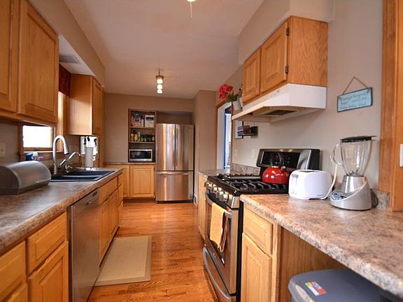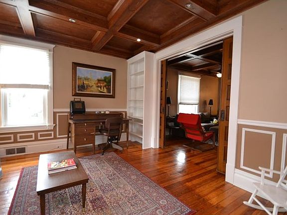 So cool mixture of rustic and classic styling, original hardwood,pocket doors and double staircase you only find in a home like this. Master is located on the top floor with its own full bath and fireplace. Second floor has 4 bedrooms of which one currently serves as the laundry utility room. Transoms above every room that take you back to the era this unique home was built. Large galley kitchen with breakfast bar, coffered ceilings in the formal front room. Large entry way with original raised panel wainscotting. Great front porch to sit out and enjoy, or the relaxing back deck. Back yard has no throughway for privacy, great place to play or garden. Detached 2 car garage for off street parking in town. Walk to everything its just blocks away! Park, Pool (new pool this year) downtown or historic Harmony. updated HVAC and electrical, new carpet upstairs. Partially finished basement has full bathroom and laundry hook ups.