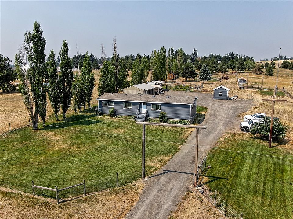 Updated Manufactured home 3 bed 2 bath with new windows, siding, paint and a newer roof; all on 5 1/2 acres ready for your horses! Fenced and Cross Fenced, riding arena, frost free hydrants and power out to pasture. 18x30 detached garage/shop with an oil changing pit! Large pump house/storage building with underground pressure tank. Updates in the home too! Close to Spokane, Airport and South Hill.