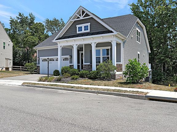 Abundant in charm with an open concept floor plan, a main level master suite and no HOA! The inviting front porch greets you before stepping into the foyer with gleaming hardwood floors and a tray ceiling. The hardwoods flow seamlessly into what is sure to be the heart of the home- the large open great room and kitchen. Highlighting the great room is the stone surround gas fireplace that is flanked by two large windows, allowing plenty of natural light indoors. A perfect layout for entertaining- the large center island offers more casual seating while the dining area could host a nice sit down dinner. Your inner chef will be delighted by the beautiful kitchen which boasts gorgeous counters, stainless steel appliances, stunning dark cabinets and a pantry. The main level office provides the perfect place to work from home or to settle in with a good book. Just down the hall is the welcoming primary suite with lush wall to wall carpeting, a large walk-in closet and attached bath with a spacious vanity and walk-in shower. A second bedroom and full bath along with the mud room/laundry area round out the main floor. Proceed upstairs to find the third bedroom, a full bath and the sizeable family room, complete with built in surround sound- ideal for an at home movie night! Even more space await in the partially finished lower level which includes a rec room and offers walk-out access to the rear stone patio. If you enjoy outdoor entertaining, the minimal maintenance 16 x 10 composite deck provides the perfect setting to host a BBQ while looking out onto the rear yard which back to open common space and trees. Situated on a corner lot, parking is never an issue with the 2 car attached garage, asphalt driveway and additional on street parking. Convenient to town, restaurants, shops and commuter routes, you won't want to miss out on this fantastic home!
