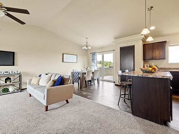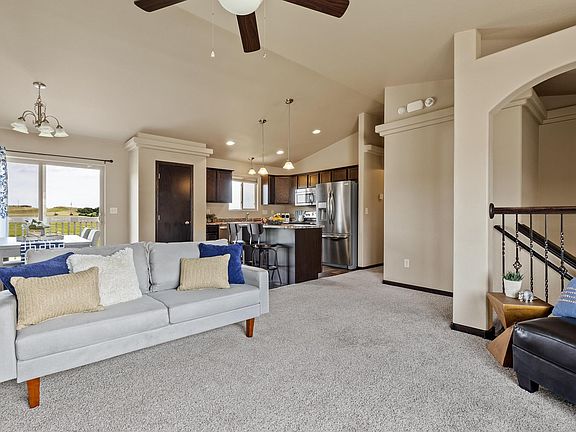 Listed by Pete Jensen, KWBH, 605-484-6713. Welcome home to this beautiful split foyer home with a convenient layout, unique design features and architectural flair throughout! *Upgrades include: new Hardiboard siding (2021/2022), new class 3 shingles, gutters, and downspouts, a recently stained privacy fence and deck, new garage door & key pad (2023), LED adjustable color temp lighting, new carpet (2022), USB and USB-C outlets and more *A spacious entryway welcomes you in, giving easy access to both upper and lower levels *An open concept main living area makes entertaining a breeze *The spacious living room is accented by vaulted ceilings and a large bay window overlooking the front yard, and bathing this room in fantastic natural light *Nearby dining room with slider door access to the back yard *Prepare meals with ease in the corner kitchen offering ample cabinet and counter space, stainless steel appliances, a window overlooking the back yard, a large breakfast island for storage and seating, and a storage pantry *Main level primary suite in the front corner of the home, with a spacious bedroom with trayed ceilings, and an ensuite bathroom with private walk-in closet *1 additional bedroom and 1 full bathroom on this level*The walkout basement was recently finished and boasts a large family room with corner electric fireplace and a wood accent ceiling beam *2 additional bedrooms with large windows, 1 full bathroom and a laundry/mechanical room complete this level