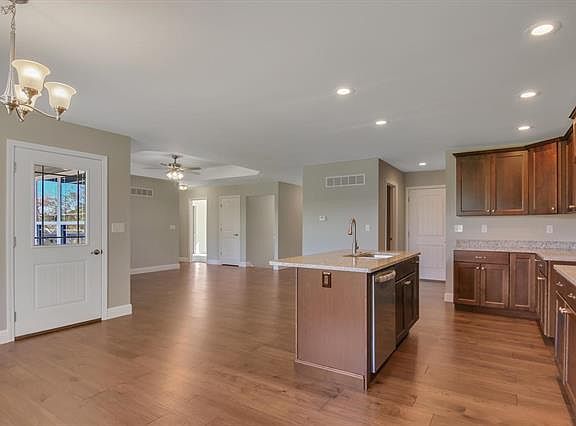 Bring the binoculars! Keep an eye on the deer and turkey from one of the two 21X10 decks, both are which are partially covered! This ranch home features an open floor plan concept with divided floor plan offering 3 bedrooms and 2.5 bathrooms. The kitchen offers granite counter tops, maple cabinets with soft-close drawers, center island, pantry, and some stainless appliances. The master suite offers wood floors with twin windows, walk-in closet, over-sized onyx shower, and 8' double bowl vanity! The other 2 bedrooms offers Jack n Jill bathroom and walk-in closets! The potential basement finish is endless! Tons of windows offers natural lighting! The layout is perfect for a future 4th bedroom, full bathroom, and huge family room area with 2 walk-out areas! Located on quiet cul-de-sac in Franklin County Country Club Estates! 3-car garage!