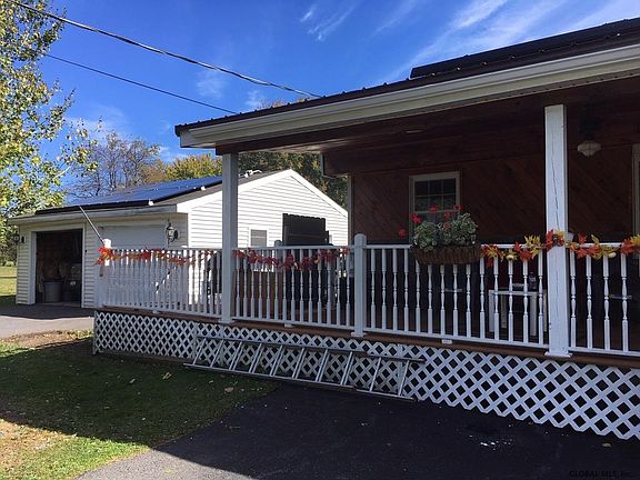 Just minutes from downtown Cobleskill with shopping, restaurants, hospital, and modern amenities, this roomy 3 - 4 bedroom ranch home w/ 2 car garage is nestled in quiet rural neighborhood on 1 full manicured acre. The large open floor plan features master bath, remodeled rooms, and vaulted ceilings - perfect for entertaining or formal dining. Bay window, covered porch and side deck new gutters, 1st floor laundry room as well as extra office room. Large open yard includes fenced in doggie pen and more shed storage. Maintenance-free no hassle solar panels reduce electric bills. Back up propane stove in living room functions during power outages. Easy access to attic storage and basement-crawl space. Interior and exterior of home both handicap accessible.