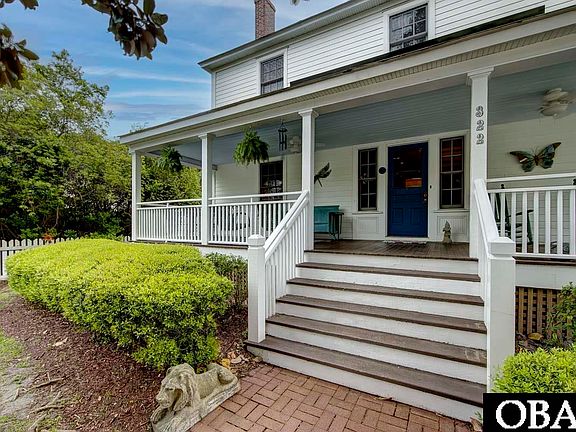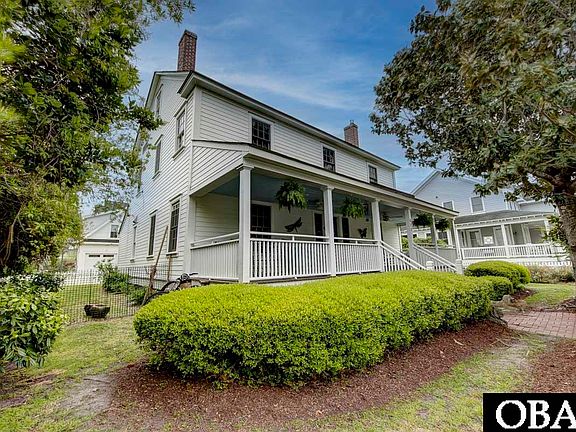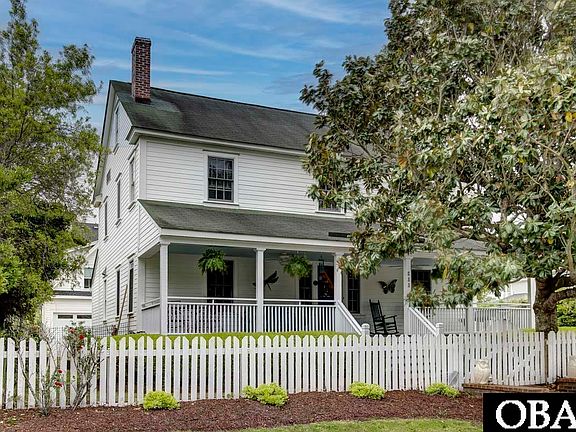 RARE HISTORIC DOWNTOWN MANTEO, incredible opportunity to own a piece of Roanoke Island history! True coastal charm, the Hulcam Dairy Farmhouse, is an anchor in historic downtown Manteo's waterfront development, Marshes Light. This beautifully restored & maintained 4 BR 4 BA home is believed to be one of the oldest homes in Manteo, thought by local historians to date back to the 1860's. She was lovingly renovated by both former owners in 2008 and again by current owners in 2022. Sellers have added their own special updates & touches including any additional renovation needs to roof, foundation & chimneys, new tankless hot water heater 2024, replaced HVAC system air handlers & heat pumps in 2023, & restored gas fireplace in front parlor. Interior updates include new marble kitchen countertops, stainless appliances, & kitchen island with black walnut top unites modern kitchen appeal with rustic farmhouse charm. Last dining photo shows tenant updated wall paper for focus wall. Relax on the screened porch off the kitchen & living area or settle into the old Manteo charm of the classic front porch. Beautiful sunrise and sound views from primary suite & top floor bed/flex room (could be wonderful art studio for the creative buyer). Fully fenced landscaped yard with outdoor shower for those sandy feet coming back from the beach. Convenient location right around the corner from all of downtown Manteo's action, docks, park, grocery, retail, and less than 15 mins drive to the beaches of Nags Head! Sound access & neighborhood dock to stroll along. *Home is sold unfurnished, listing photos are from prior listing when owner occupied to give staged view of home*
