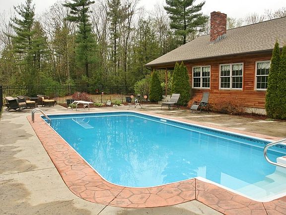 Attention to details are evident throughout this custom built executive Ranch. Tastefully situated on 14+ acres to enjoy the privacy of this property. This home offers an outstanding open floor plan with cathedral ceilings and hard wood floors throughout. Step out of the French doors from the kitchen/family room, or the master bedroom to the two patios that lead to the impressive pool area, complete with a cabana offering a bar and 1/2 bath and outdoor shower for you and your guests. The basement offers 1100 sq. ft. of living space with a complete kitchen and bathroom with a large walk in shower. You have your choice of heating with the efficient Buderus boiler or the outdoor wood furnace. Low maintenance Western Red Cedar siding, this product offers high insulating properties and its natural oils make it resistant to decay and insects providing a life time of natural beauty.