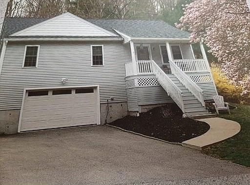 The moment you step into this charming ranch you will feel the warmth and appreciate the care the original owners have taken with this home. Situated on a country road on one third of an acre with cleared back yard for entertaining but has woods for privacy, storage shed and a firepit to enjoy. Vaulted ceiling in front to back living room and kitchen with hardwood floors, Kitchen offers custom cherry cabinets, granite countertop, stainless steel appliances, pantry closet, sliders to deck. Two bedrooms...master has full bath with granite counter and tiled floor, home office or den with hardwood floors, main bath off hall is also tiled and has granite countertop. Walkout lower level is ready for your finishing touches...electric heat in lower level, washer/dryer hookups, oversized garage with side entrance. Central air-conditioning