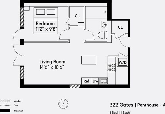 This is a 1 bedroom, 1.0 bathroom, apartment home. This home is located at 322 Gates Ave PENTHOUSE A, Brooklyn, NY 11216.