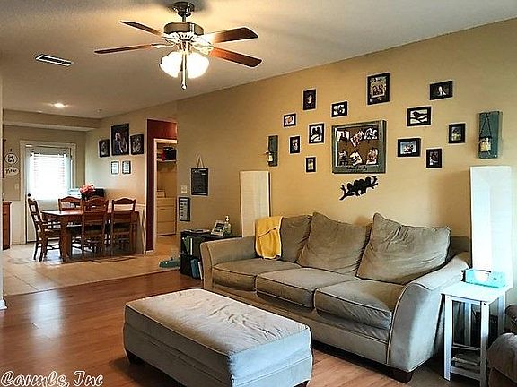 Lots of natural light and large rooms. Pretty laminate floors and tray ceiling in the living room, new ceramic tile in all wet areas. Kitchen has plenty of counter top and cabinet space and has a large pantry. The fourth bedroom is apart from the others and could make a great office or kids playroom. You will love the large fenced backyard. Private feeling backyard - no other patios visible. Neighborhood has use of 20 wooded acres and 6 acre lake. New roof 2016. Qualifies for RD (see agent remarks)