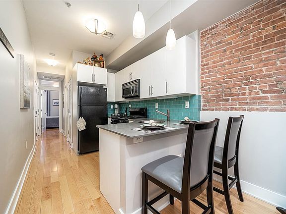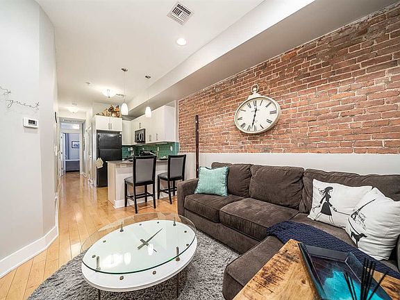 Cozy and charming, this spacious 2 bedroom, 1.5 bath condo in downtown Hoboken is move-in ready. Featuring new appliances, this meticulous second-floor unit also includes central air and washer/dryer. Exposed brick is splashed throughout both bedrooms, which are ideally located on opposite ends - one of which can be used as a home office - in addition to the warm living space. This alluring property also boasts a private outdoor terrace and 10 ft. ceilings. A short walk to public transportation, including NJ Transit and the PATH, this ideal location is also home to some of Hoboken's most notable restaurants, with in-and-outdoor dining accessible. Access to storage in the basement and garage parking a very short distance away.