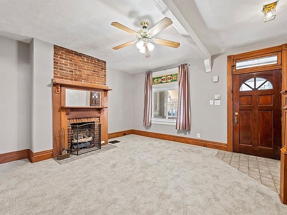 Welcome to this charming home nestled in the heart of McKees Rocks! Step onto the inviting covered front porch then step Inside to find a spacious living room with tall ceilings, abundant natural light, & beautiful brick fireplace adding character. Flowing seamlessly from the living room is the dining room, where a second brick fireplace creates a cozy atmosphere for gatherings. The retro-style kitchen offers ample cabinet space & room for a cozy breakfast nook. Upstairs, the sizable master bedroom boasts large windows & great closet space, while the second bedroom offers great storage and unique charm. The updated full bath on this level features a modern glass walk-in shower. The 3rd floor has an additional room, ideal for a home office or a hangout space. The full basement provides plenty of storage, and the flat yard is perfect for outdoor activities. A detached 1-car garage completes this home, which is conveniently located close to the city yet offers a neighborly feel.