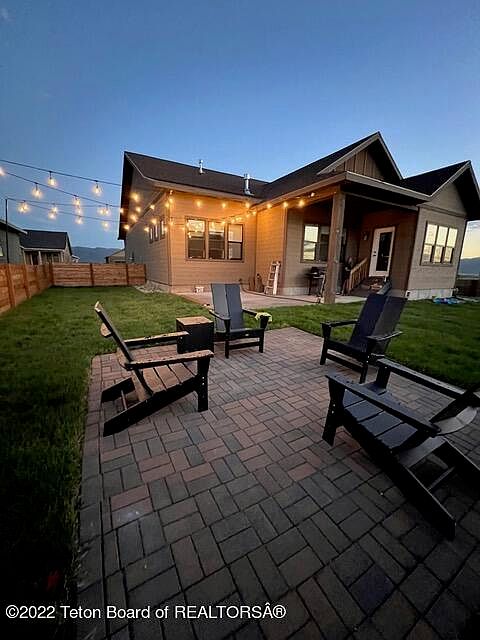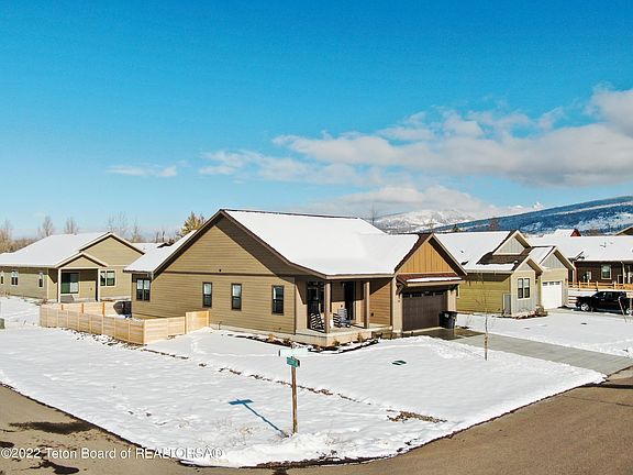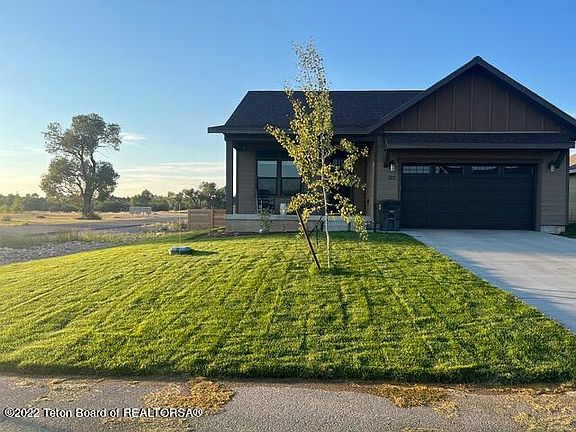 Corner Lot of Teton Reserve, featuring 1750 sq ft beautiful recently built (2021) home with 3 beds and 2.5 baths. This efficient 'Wister' floor plan flows from front porch and entry way to hallway with 2 guest bedrooms and shared full bath with tub/shower, as well as a 1/2 bath (powder), laundry room and mudroom leading to 2 car garage. Open kitchen and living room concept leads to covered patio and inviting upgraded backyard with fire pit (including Adirondack chairs, flowerbeds, fencing and lawn.) Gracious primary suite has double sinks, subway tile shower and full walk in closet. Excellent proximity to Victor, nearby golf course, and its short term rentals option makes this home a great fit for commuters, investment property, or second home buyers. Selling furnished - list upon request.