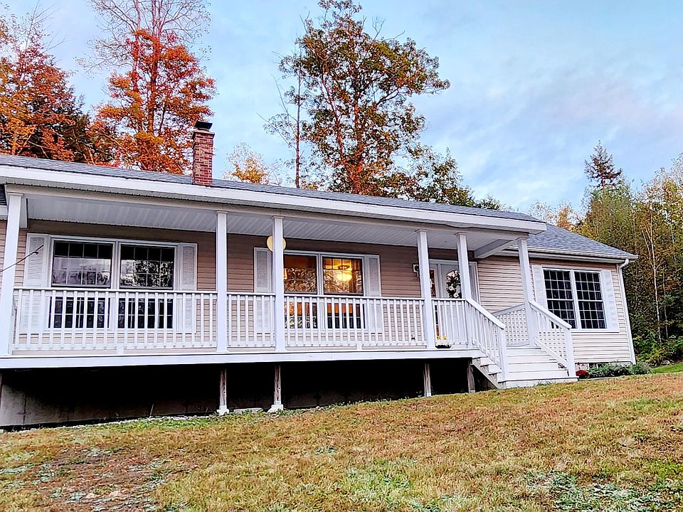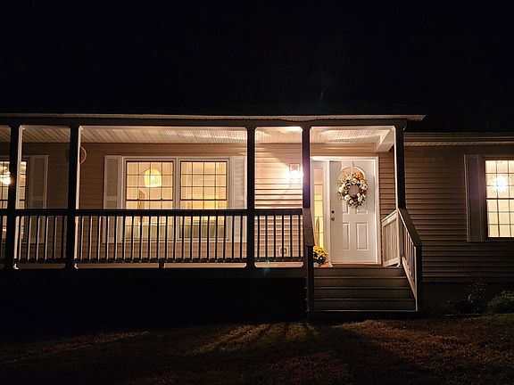 Beautiful sunsets, complete privacy and it's move-in-ready. This stunning, immaculate home is nestled in the perfect spot on 3.3 acres. It features a front porch across two thirds of the home. The open concept kitchen/dining room offers plenty of room for guests and flows right into the large living room with a wall of built-in shelves and cabinets and the perfect spot for your TV. The Primary Bedroom with bath overlooks the front yard & sunset views. It is located on the opposite side of the home from the other 2 bedrooms for privacy. Both full baths are well appointed. The basement is expansive and offers so many options. The home has many updates including a new roof in September, new paint, new lights, new flooring, new refrigerator and more. Come sit on your back deck or at the fire pit area near the shed and enjoy all this home has to offer! This one won't last!