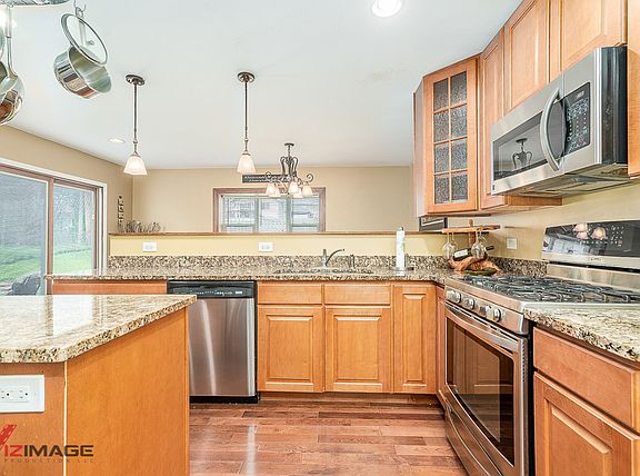Recently Remodeled 3 bed 1 bath ranch. This beautiful home is one of a kind with enormous amounts of natural sunlight throughout. The living room and Kitchen both feature large glorious bay windows with stunning dark hardwood flooring throughout. A breath-taking, commodious, chefs kitchen that boasts 42" maple cabinets, island, granite counters with endless space, stainless steel appliances, a 5 burner stovetop, & a highly desirable pot rack. The Kitchen opens up to the dining area which boasts a one of a kind sliding door with an internal blinds so pets and children don't get into them. The sliding door opens up to the concrete patio overlooking the fenced yard, shed, & fire pit. This meticulously well maintained home features brand new siding and 2 new windows, plus a conveniently attached deep 1 1/2 car garage with work bench! Dates of upgrades and mechanicals; siding 2019, water heater 2018, sliding door, 2 windows, and a bay window 2018, H/VAC 2013, flooring 2016, bath 2016, kitchen 2016, sump pump 2019, plumbing 2016, electrical 2016.SHOWINGS WILL BE SAT AND SUNDAY ONLY.