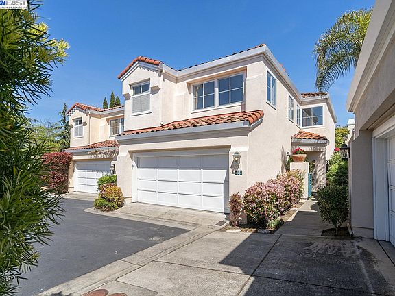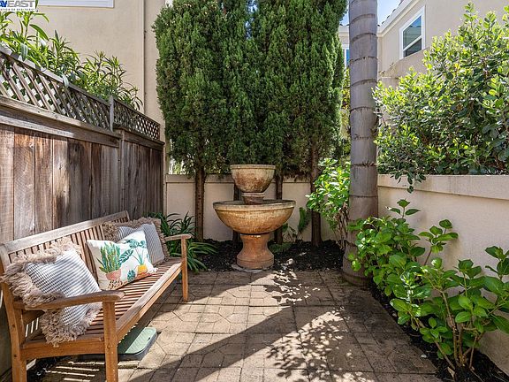 This newly refreshed Costa Brava home on a quiet cul-de-sac has the very best of what Harbor Bay Isle has to offer! With an inviting front courtyard with fountain, chic lighting, and cathedral ceilings, this move-in ready home features a spacious eat-in kitchen with stainless steel appliances + a gas range with an open concept living area plus powder room on the main level. Upstairs you'll find 3 bedrooms - including a primary suite with walk-in closet, an ensuite bathroom, plus 2 additional bedrooms and a hallway bathroom. The private back patio offers the perfect space for entertaining and the 2-car attached garage provides ample storage space. Costa Brava has a fabulous community pool + hot tub and park, just 1 block away. Surrounded by walking and biking trails and parks, close to shopping/restaurants, and just a few blocks to the SF Ferry and top rated schools, this is a must see!