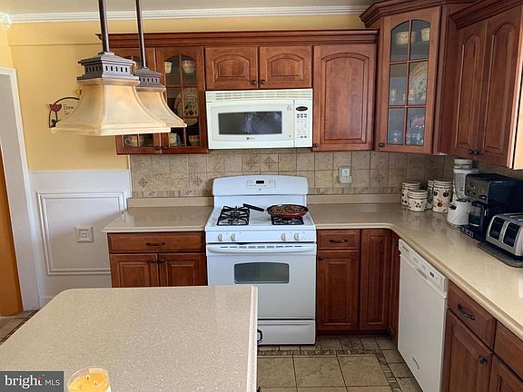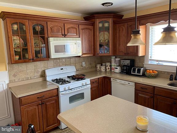 Beautiful Brick Ranch with gorgeous kitchen featuring center island, granite counter tops, pendant lighting, wainscotting and attractive tile backsplash. Formal living room with hardwood floors. Full finished basement has a lovely family room and possible 4th bedroom and laundry area. One car garage with skylight as it was in the process of being converted to a dining room but easy convert back. Cozy side entrance breezeway perfect for relaxing on summer nights. Fenced yard and shed.