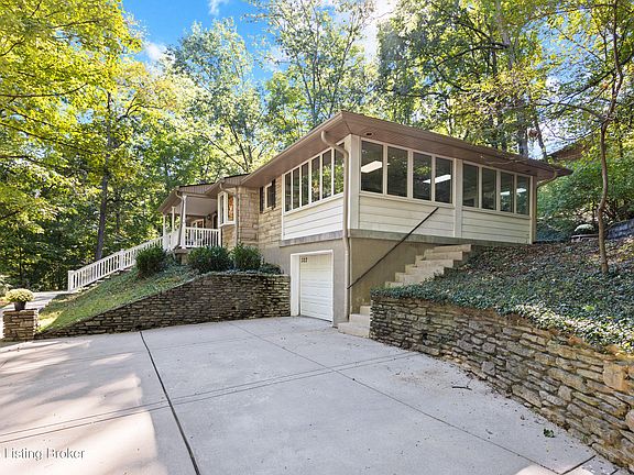 Nestled beside the historic Little Loomhouse, this mid-century stone ranch is part of Louisville's storied Kenwood Hill, home to the Hill sisters who penned 'Happy Birthday to You.' Built in 1952, this peaceful retreat offers over 3,900 square feet of finished living space surrounded by nature and history. Beautiful hardwood floors lie beneath all existing carpet, ready to be uncovered and restored to their original form. Lovingly maintained by the same owner for more than 40 years, this home is filled with charm and character. Inside you'll find arched entries leading into the dining and family rooms, two fireplaces, and a sunroom lined with windows overlooking the wooded lot and its gorgeous views. The spacious layout includes large bay windows, an updated kitchen, three full baths, a bright, open family room perfect for gatherings. Downstairs, a finished lower level offers plenty of additional space... complete with a secret room waiting to be discovered. Enjoy the peaceful setting and unbeatable location, just minutes from Iroquois Park and Amphitheater, with quick access to hiking and biking trails, summer concerts, Colonial Gardens, and many popular restaurants and cafés. Kenwood Hill is a place where history, nature, and community come together, a truly magical neighborhood. This home is a diamond in the rough, lovingly cared for and ready for its next chapter.