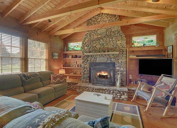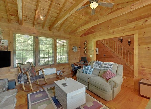 Living the life on the river in the mountains!! One of the few homes remaining for sale on the river, this 2 BR, 1.5 bath adorable cabin sits right on the Nottely River in the North GA Mtns. Cabin has been so tastefully done that you will not want to leave. Nice sized sparkling kitchen with stainless steel appliances gives it a modern twist. Living room is inviting w/ beautiful stacked river stone fireplace, cathedral ceilings, and all the natural wood. Sunroom has tons of light with all the windows. Home is heated and cooled by Mitsubishi unit with window unit for extra cooling if needed. Main floor outdoor deck/patio/oversized porch/yard space overlooking the river. Most furniture stays. From your back yard you can throw your line out for trout fishing, or swim, or do some tubing down the river. Wired for fiber optic. This is one that you will not want to miss. Immaculate. Could be a great investment for vacation rental.