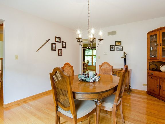 This home has so much to offer! It has a huge private backyard with brick paver patio. The main floor has beautifully finished hardwood floors. The kitchen has new quartz counters and tiled backsplash. The adjoining family room with fireplace is the the heart of the home where your family will spend a lot of time but there is also a formal living room and dining room. There is even more living space when you add in the big finished basement with RecRoom. Basement also has a full bath and possible 5th bedroom. Upstairs the primary bedroom has hardwood floors, walk-in closet and private bath with whirlpool tub and separate shower. The other bedrooms have new carpet. Other highlights inside include the first floor laundry plus full bath on the main floor. The driveway was replaced in 2020. The street in back gives you access to the shed and a place to park your boat or RV. There is no homeowner's association. No covenants and restrictions. The home is only steps to Veterans Acres Wingate Prairie and the bike path. This home is in the Prairie Ridge High School district and is 6 blocks to downtown, trains and restaurants.
