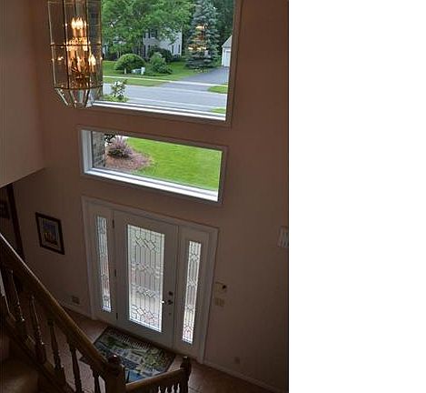 Beautiful mature treed and landscaped setting! Private rear yard! Vinyl siding! 95% hi-efficiency furnace new 10x13! Central air new '96! Fiberglass garage door new '12! Dramatic 12x8 two story foyer! 20x13 eat-in kitchen with bay window island pantry and new countertops & sink! 9x6 first floor laundry! 11x10 first floor den/bedroom! 15x12 master suite with dressing area 7x6 walk-in closet whirlpool tub skylight and cathedral ceilings! Bay window in 15x11 living room and 15x11 dining room! 16x14 fireplaced family room! 24x16 deck! 10x8 shed! All applinaces and drapes included! $685 STAR!