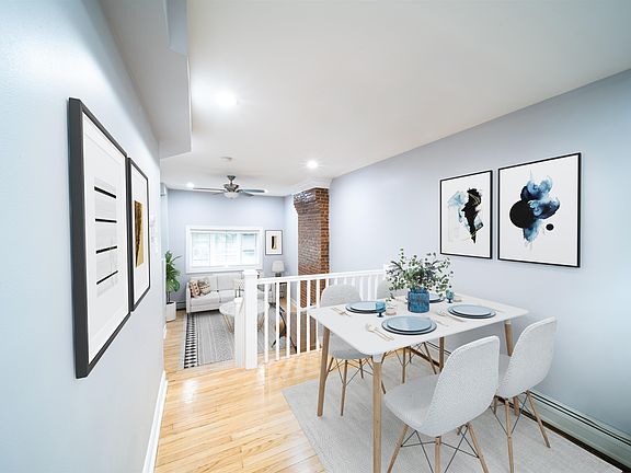 Come visit this fantastic 2 bed 2 full bath condo on Madison St in downtown Hoboken. The home is spacious with a unique 2-tier style dining room and living room with exposed brick. The kitchen is equipped with stainless steel appliances, granite countertops, a breakfast bar and plenty of cabinet space for kitchenware. Hardwood floors throughout the home and recessed lighting or a nice ambiance. The building includes private storage for each unit, along with shared laundry and a shared backyard for your enjoyment with patio furniture and a BBQ grill. The condo is conveniently located by the light rail station, schools, parks and stores. Great opportunity as an investment property or to owner occupy. Come take a look!