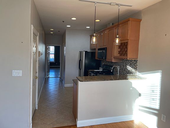 One bedroom with Open Layout and great natural light. Large bedroom in rear with 2 closets. Hardwood, exposed brick, and ceiling fans throughout, Kitchen with SS appliances, granite counter tops, breakfast bar, and wine rack. Free shared laundry, small storage area and use of common backyard. Close to PATH (10 mins), NYC Bus (4 blocks) and Light Rail (2 blocks). Water included, but renter responsible for PSEG (gas and electric) and any cable/internet/etc. Lease terms - 1 year w/ option to renew 1 Month rent security deposit Cats and Small Dogs welcome (additional deposit may be required)
