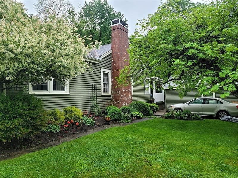 This charming ranch home features 4 bedrooms, a brick fireplace and slate roof! Underneath the wall to wall carpet are hardwood floors. The home has been well maintained with a newer gas furnace and central air. The yard is amazingly charming and in addition to the one car garage, there is a large shed!