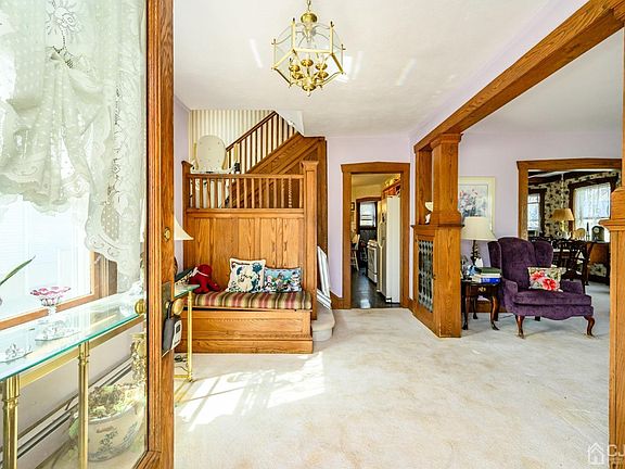 Look no further! Lovely 5 Bed 2 Bath Craftsman Colonial with detached 2 Car Garage in desirable Dunellen is sure to impress! Well maintained in a great location, step in from the Covered Rocking Chair Porch to find a sophisticated interior filled with character & charm. Foyer entry opens to a spacious Living rm & elegant Formal Dining rm with original wood trim & coffered ceiling. Plenty of natural light throughout! Sizable Eat-in-Kitchen offers a Pantry, plenty of cabinet storage, recessed lighting & built-in breakfast bar. Convenient Full Bath & Mudroom, too! Upstairs, the 2nd luxe Full Bath with ceramic tiling, glass stall shower & soaking tub. 3 generously sized Bedrooms & a blissful, light & bright Sunroom, too! Finished 3rd lvl boasts 2 more private Bedrooms. Full Basement with Laundry + storage adds to the package - finish it off for even MORE living space! Sprawling Backyard boasts a quaint Deck, Patio area, Detached 2 Car Garage with dbl wide drive & plenty of more space to create & play. All of this & more in a great neighborhood, close to parks, schools, Dunellen Train Station, Rte 22 amenities, the list goes on! Come & see TODAY!
