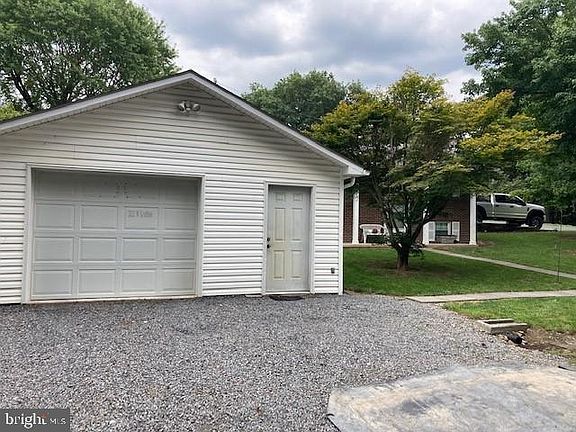 Centrally located brick split level 4 bedroom, 2 bath in downtown Romney with separate garage on a corner lot. The upper level has primary bedroom and 3 other bedrooms on lower level. The front offers a covered entire length porch with columns that makes this house stand out. Hookup in basement for pellet or wood stove. Pellet stove does not convey. Convenient downtown location. South Branch River access less than 10 minutes away. Assesor may not count a room in lower level as bedroom because of access. Upper level bedroom that was enlarged by combining 2 bedrooms into 1 which can easily be converted back.