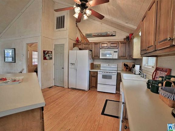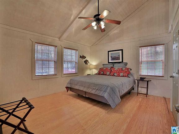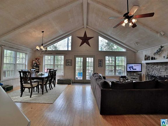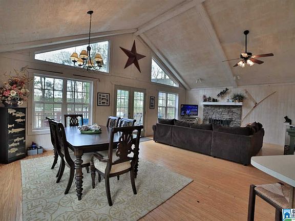 Three bedroom/three bath lake cabin on south end of beautiful Lake Wedowee with gentle walk to the water! This home offers a large master on the main level with an open floor plan with kitchen, dining, and great room area, cathedral ceiling, and stone fireplace. On the terrace level you have two additional bedroom and two baths, as well as another great room. There's a large deck off the back of the home overlooking the lake. This property also has a stationary dock with an arbor on the water. This lake home is a great value!