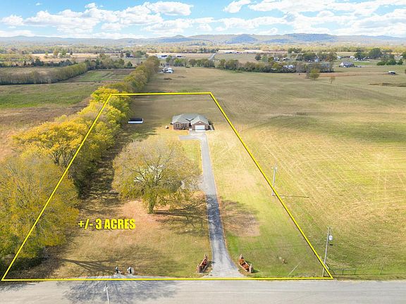 BEAUTIFUL Brick Home nestled on 3 +/- Acres in the CHARMING area of Petersburg, TN. This pristine home includes 3 bedrooms & 2.5 Bathrooms. The large master suite entails a fireplace and built-in cabinets/shelves. Other features include a huge living area with vaulted ceilings and fireplace, dining room, laundry room with half bath, and kitchen with pantry & breakfast nook! Outside the acreage is open & flat with a fenced in back yard, and paved driveway. Located in a prime location, this LOVELY brick home offers the best of both worlds—Tranquility & convenience! A quiet & peaceful area! Move-in-Ready! Fiber Internet Available!
