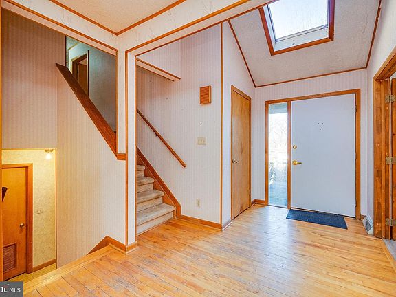 Location, location - a beautiful setting with woods to rear - Welcome to this custom 3 BR, 2.5 bath Contemporary that offers loads of space to entertain family and friends indoors and out. The home does need TLC but with a little sweat equity - it will be a showstopper. There are hardwoods from entry through dining and kitchen. A vaulted ceiling family room with skylight and wood burning fireplace on main level as well as a huge recreation room on the lower level. Upstairs on this split style are 3 bedrooms and 2 full baths. The master bedroom also has a sunroom attached that used to be a private hot tub room with door to exterior deck. There is plenty of cabinet and counter space in kitchen with an island with seating and storage. As you exit the dining room you enter a covered patio with removable awnings for privacy. There is a huge deck around a sunken in above ground pool and plenty of yard space too.