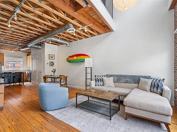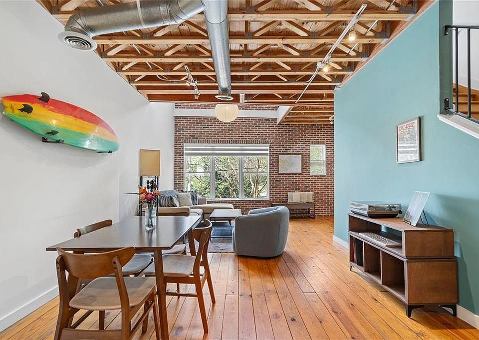 WOW!! NEW PRICE!! Take advantage of this very will priced Loft!! Cool, Cute and LOCATION describe this amazing townhome in the heart of Castleberry HIll! This unique west-facing home immerses you in the heart of Atlanta's vibrant culture while offering a serene personal retreat with breathtaking cityscape sunsets from your private rooftop deck. Step inside and be captivated by the industrial-chic design, featuring soaring ceilings, exposed brick walls, and gleaming heart-of-pine wood floors. The open-concept living space is perfect for entertaining, flowing seamlessly from a modern kitchen with exposed ductwork into a spacious living area bathed in natural light. The primary suite offers a peaceful escape with a spacious bedroom, a newly renovated bathroom with a dual vanity, quartz countertops and a beautifully tiled glass-enclosed shower. Along with custom HUGE walk-in closet is hard to find in this type of home! Enjoy the convenience of an in-unit washer and dryer and the peace of mind that comes with a secure, single-car garage behind a locked gate. As a special additional feature there is a small unique storefront to showcase your smaill business if needed or can be used as additional storage space. Located on the desirable south end of the neighborhood, this home provides easy access in and out, even during major events. You're just a 15-minute walk from Mercedes-Benz Stadium and State Farm Arena, and a short bike ride from the Atlanta Beltline. Explore the local art scene with the Castleberry Hill Art Stroll, enjoy nearby breweries and restaurants like No Mas Cantina and Wild Leap, and be among the first to experience the transformative Centennial Yards development. With unparalleled proximity to I-75/85 and I-20, your commute is a breeze. Don't miss this opportunity to own a piece of Atlanta's most dynamic neighborhood!