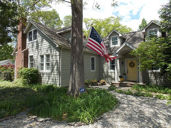 1927 Custom Cape w/abundant charm & character located in quaint waterfront community. Beautiful park-like gardens & plantings surround. Pond too! Detached 1.5 car garage w/workbench & loft, 2 separate driveways. Bdrm on 1st level w/walk-in clst & addt'l clst. Spacious living rm w/custom trim, moldings & shadow boxing, built-ins, fireplace & arched doorway. Charming reading nook, family rm w/beamed ceils, knotty pine walls, plantation shuttters, fireplace w/wood burning insert & hrdwd flrs further accent this comfortable living space. Dining area w/plenty of natural light leads into newer kitchen, dbl wall oven, counter top range, pantry & lots of counter space! Central AC,public utilities. Enclosed rear porch w/slate flooring & wainscotting, above ground pool. A MUST SEE!