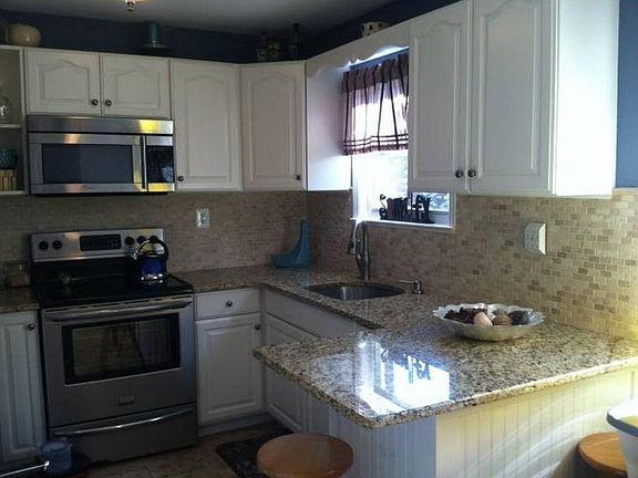 A must see! Bright, cheerful & sunny describes this great, 1st floor, end unit condo! Completely renovated with an open floor plan and plenty of space to entertain! Ground entrance to foyer living room with hard wood floors throughout and a large picture window. Eat in kitchen has been completely renovated with new cabinetry, granite counter tops, stainless steel appliances, stone backsplash and ceramic tile floors, plus a beautiful double window. Large bedroom with HUGE walk-in closet that includes onsite washer and dryer. Newly painted with neutral colors throughout. Updated tiled bath with beautiful vanity and jetted tub. 2 newer energy efficient wall air conditioning units. Additional upgrades include thermopane windows and faux wood blinds. Back door leads to assigned parking spot as well as full basement for storage. Plenty of additional parking for guests! Outdoor space fit for outdoor dining or just for lounging. Bring your grill! This unit is in PRISTINE CONDITION VERY CLEAN AND READY TO MOVE IN! Pets are OK. Close to major highways, shops and restaurants, but still quiet enough to feel like you're away from it all. HOA includes exterior maintenance, common area maintenance, landscaping, snow removal, trash collection, and public water. Come see! Owner pays sewer an HOA. Tenant responsible for all other utilities