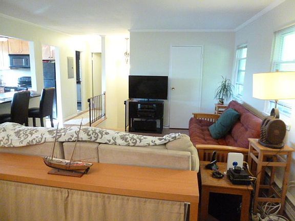 Outstanding Views. natural sunlit rooms, mission style kitchen,w Bosch Dishwasher, Sharp Microwave over a Kenmore range and oven. Granite countertops w Island desk in Kitchen and bar countertop in LR. Hardwood Pergo floors in Kitchen and LR and Closets. New carpet in Bedroom and on stairs. 12X12 brick paver patio and garden. Large updated bathroom. Oversized garage with W D hookups, deep sink and hose bib. Storage area in additional 1 2 garage. Ample parking in Cul de Sac. Reasonable maintenance at $217 monthly which includes water and garbage pick up and all outside maintenance including snow plowing and lawn care. New Bradford White HWH, two new Frigidaire in Wall A C's. Updated electrical panel and wiring. Huge walk in closet and dressing area. close to Rt 80 and Rt 15. 5 Min to shops and Transport.