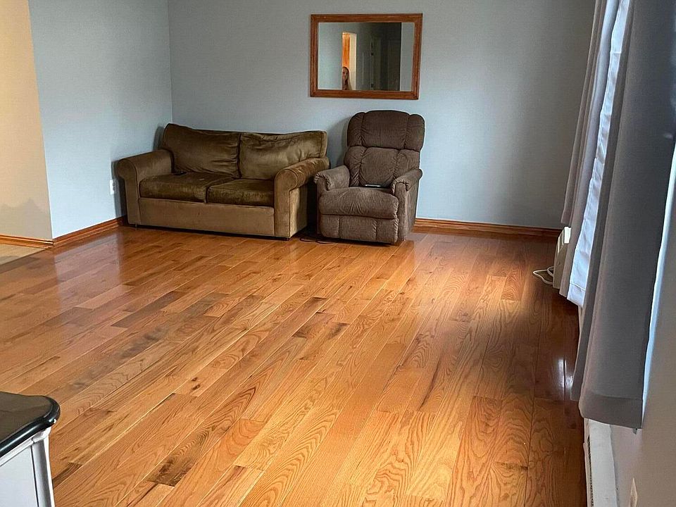 Highly sought after Mountain View Manor! Immaculate 1st flr 1 bedroom 1 bath with unfinished basement storage area along with an updated eat in kitchen that has ceiling fan, beautiful counters & appliances, pantry, & tile floor. Large sized bedroom with wood flooring bright windows, and over sized walk in closet. Living room/dining room combo with hard wood floors with an open concept. electric heating and 1 Wall AC unit. Beautiful updated bath with shower tub. Laundry room located in next building. Owner pays only electric, cable (if needed), and annual sewer charge. Water, garbage, lawn maintenance, & snow removal included in maint fee. Condo has front and back doors. This condo association allows dogs&cats. Assigned parking near rear entrance.