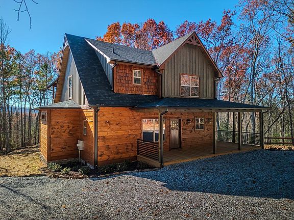 Drive through the picturesque north Georgia countryside and come home to your own personal NEW CONSTRUCTION fortress in Ridge Brook Country Estates. Perched atop a gentle knoll sits a sturdy new build looking out towards a wide view of the mountains. Easy to access by way of paved Maple Grove Rd and solid packed dirt subdivision road and driveway. Only MINUTES to Blue Ridge, Blairsville, and surrounding lakes. Park with ease in the generously sized parking area and make your way towards the inviting front porch. Enter through the custom made front door and take in the thoughtfully designed living space including a spacious dining nook, kitchen with large island, and an open living area featuring floor-to-ceiling stone fireplace and sliding glass doors. MAIN LEVEL LIVING made possible with master bedroom, kitchen, and laundry room on the first floor. Prepare the tastiest meals in the kitchen complete with stainless steel kitchen appliances and custom built cabinetry with plenty of options for cookware and ingredient storage. Drop dirty laundry right away with laundry room entry from porch. Wander upstairs to find two extra bedrooms, another bathroom, and walk-in closet. Use either of the extra bedrooms as an office or entertainment space, each with its own unique view: a private, walk out mountain view porch in one and privacy rolling doors in the other, opening up to the mountain view through the upper fixed glass windows. Relax in front of a cozy fire either inside by a gas log arrangement or on the 12' wide back deck by the vented, wood burning fireplace. In the evening retire to the comfort of the master bedroom with large en suite bathroom and walk-in closet. Feel good about living the mountain lifestyle here in Ridge Brook Country Estates!