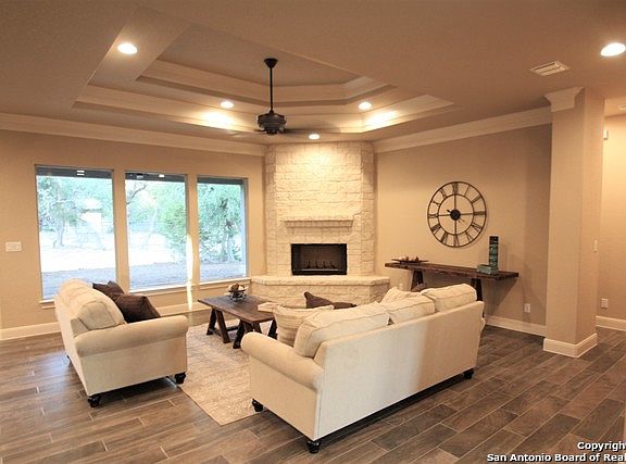 Beautiful custom home. Situated on an oversized lot w many trees. Custom cabinets & granite throughout. Stone fireplace. Large kitchen island faced w stone. Open floor plan perfect for family life & entertaining. Large master suite,walk in shower, his/her master closets,custom built in closets,pantry,storage . Enjoy the large patio with family & friends looking out to beautiful back yard. Community park offers pool,walking trails,creek for fishing,exotics. Underground utilities & quite.