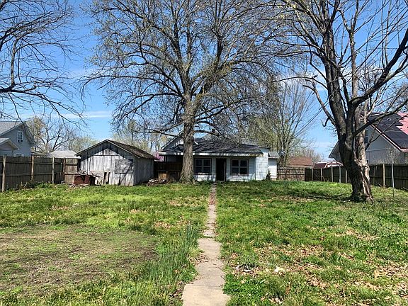 This home has plenty of space and is waiting for a new owner. There is a large kitchen with lots of cabinets. The house has hardwood floors and tall ceilings. With the livingroom and dining room both just off of the kitchen it has an open feeling. Two bedrooms and two bathrooms. One bedroom has an attached bathroom. The large back yard is enclosed by a privacy fence.