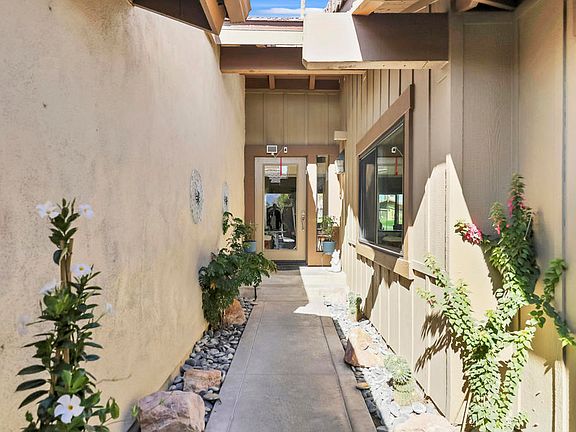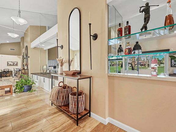 SOLAR SYSTEM INCLUDED!!!! UPGRADED! Beyond anything else for sale in The Lakes! Over 2200 SF with extensive structural and cosmetic improvements. Located on a quiet street with wide fairway views, this slice of paradise delivers! Beautiful courtyard has custom iron gate entry leading to glass front door. An inviting open floor plan offers newer kitchen with custom cabinetry, gleaming stainless steel appliances and creamy white and gray countertops. A wicked gas cook top is the centerpiece in this kitchen, perfectly perched to engage everyone. White vinyl Living and kitchen sliders have been replaced with an open concept in mind. All lighting in this home can be controlled remotely or easily with an Alexa command. HVAC units have been replaced recently. Lovely outdoor patio has been extended with gorgeous built in BBQ. Awnings offer warm ambience in the winter, and keep the space cool in the summer (misting system also!). The atrium is now a very smart office space for two. Bathrooms have been upgraded, all ensuite giving your guests the ultimate privacy and comfort! An additional room behind primary bedroom allows for crafting, more closet space, or just a place to zen. A golf cart garage has been added also. Structural upgrades in this home exceed $100,000!