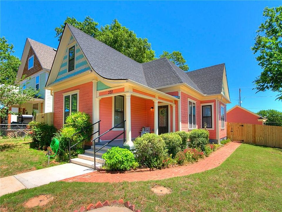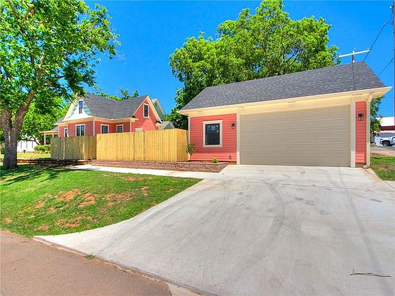 WOW! This turn of the century beauty has been completely remodeled from foundation - roof! You will absolutely be in 'awe' upon arrival! Historic colors & charm have been preserved/recreated-yet updated with high-end flooring, fixtures, trim, windows & more! All plumbing & wiring replaced. 2 heat pumps allow for zoned heating/cooling. Stunning granite, tile work, flooring & craftsmanship throughout creates an unbelievable property! Dilapidated carriage house replaced with oversized, double car garage w/workshop space, insulated garage doors & decked attic space! New sidewalks have been poured around the North side of home and walkway to garage. Retaining wall and french drains installed to insure proper drainage. Additional concreted parking behind garage with septic clean-out for RV parking! This property has SO much to offer and sits stately on a corner lot of the bricked street area in historic, downtown Guthrie. Just 2 blocks from the heart of downtown! This one is a MUST SEE!