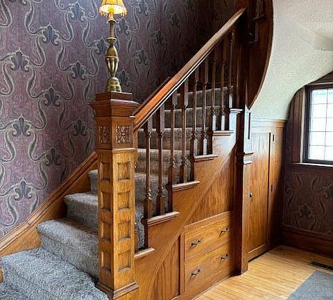 Beautiful spacious historic home with a small town price! This large home features original hardwood floors, custom woodwork throughout the home with many built-in features, a vintage fireplace mantle and tile surround, a back stair case plus a gorgeous winding staircase when you walk through the front door. Imagine the family gatherings you could host in the large family room with French doors that lead to a formal dining room off the kitchen...The 2nd floor consists of 4 large bedrooms and an equally large bathroom with laundry hookups. There is also unfinished attic space and an unfinished basement to add additional space if needed. Make your appointment today!